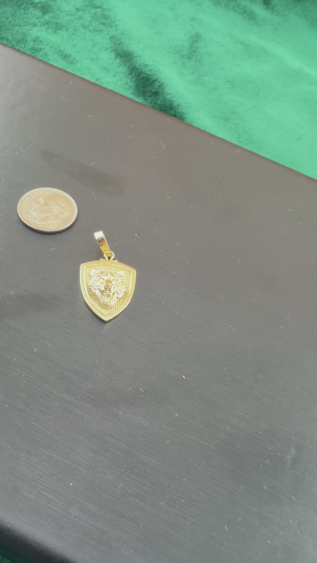 14K Yellow Gold Shield Tiger Face Pendant – Real Solid Gold Power Symbol