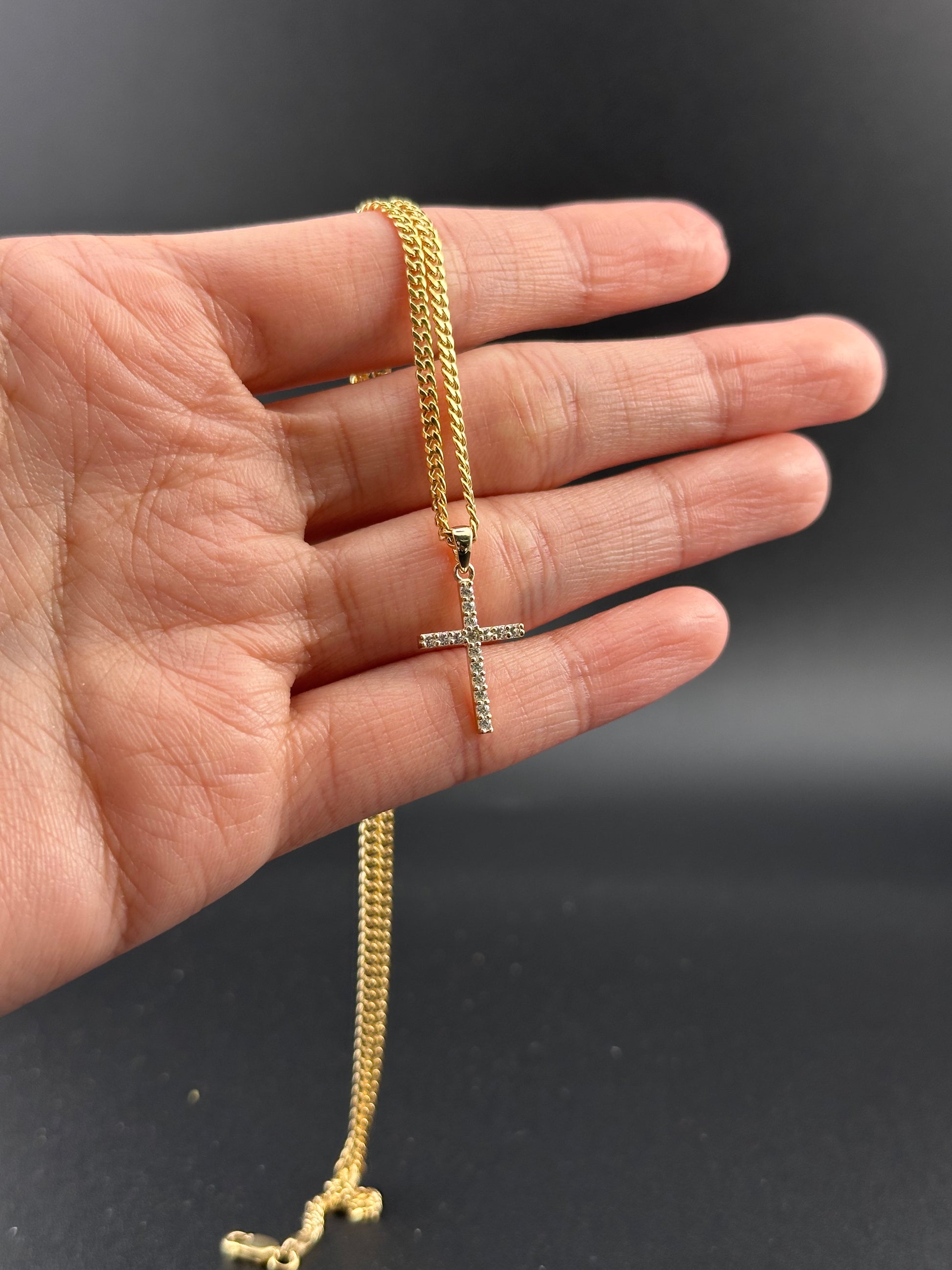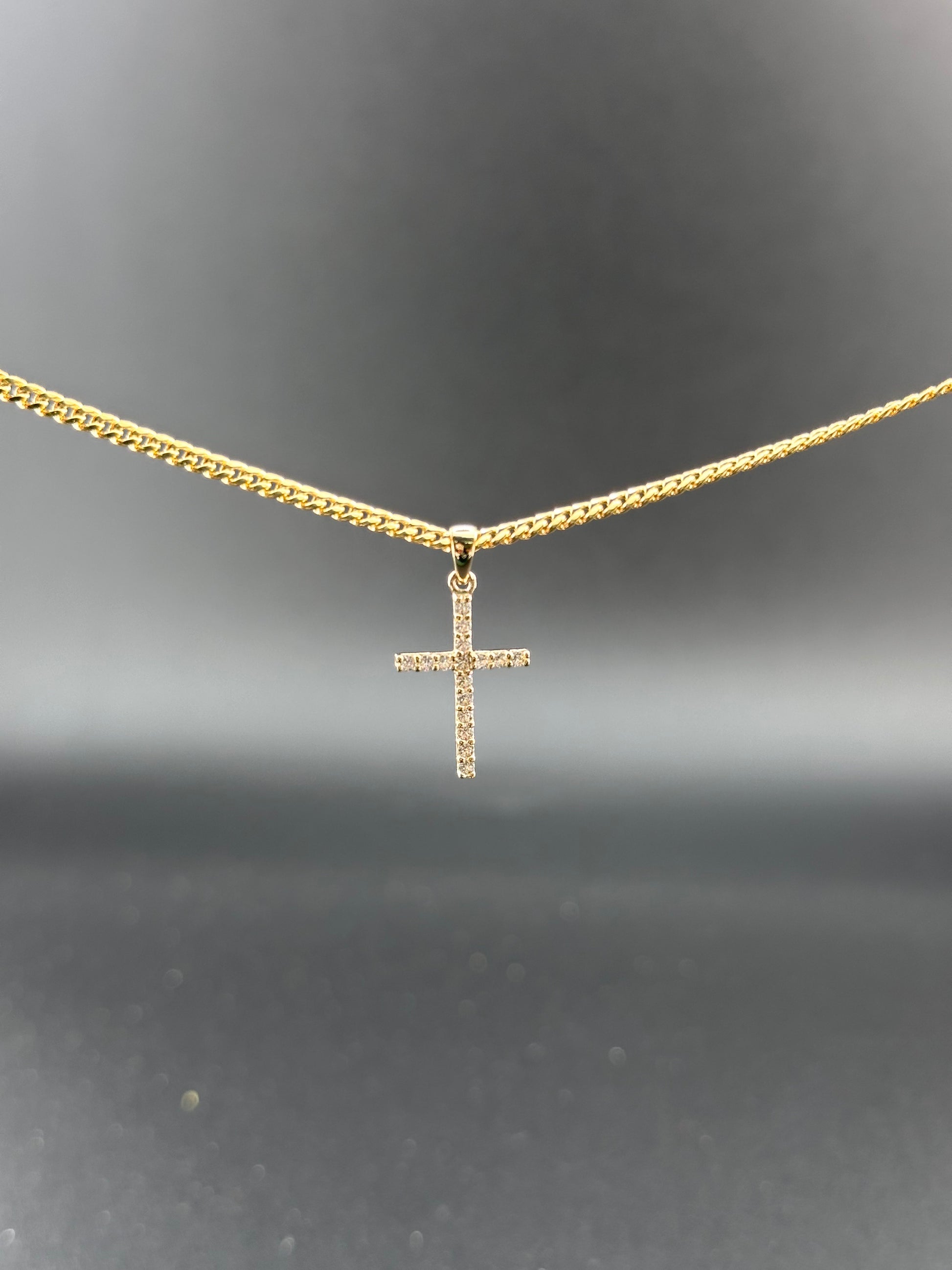 14K Gold CZ Cross Pendant | Dainty Religious Charm
