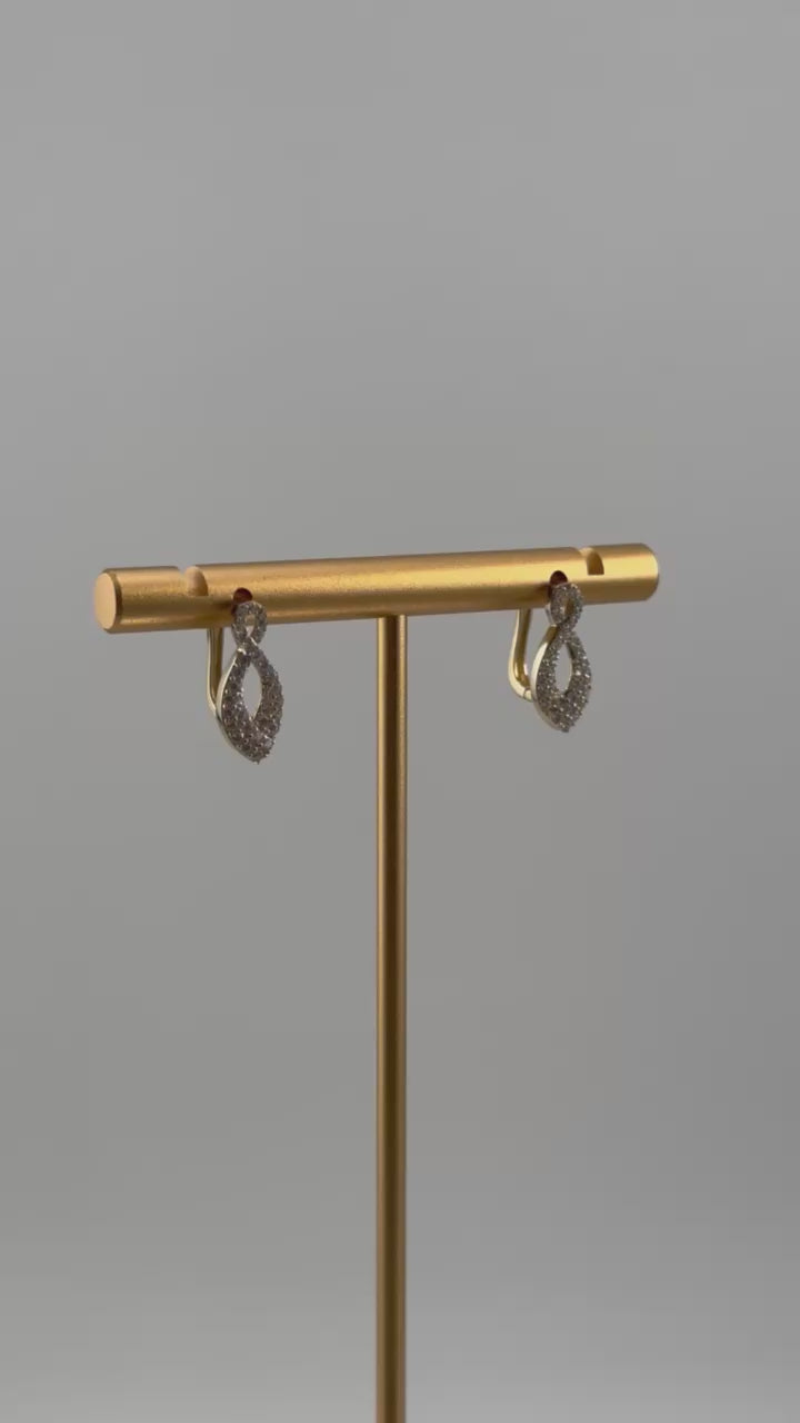 Lightweight yet durable at 2.2 grams, these earrings are perfect for everyday wear while still offering a luxurious touch. Their unique marquise silhouette with infinity twist detailing creates a modern yet classic look that complements both casual outfits and formal attire.