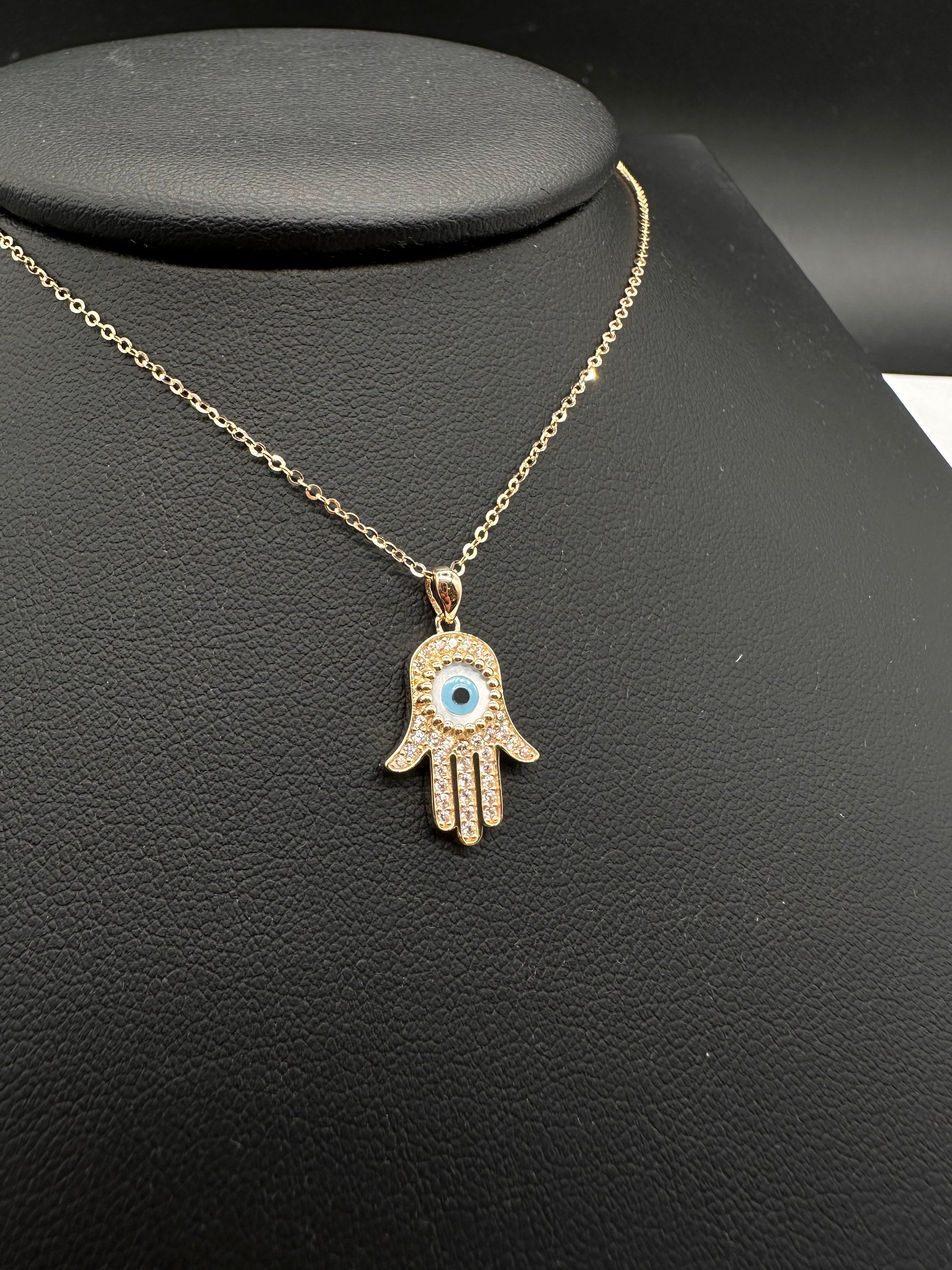 Pendant Design: Hamsa hand with central blue evil-eye motif