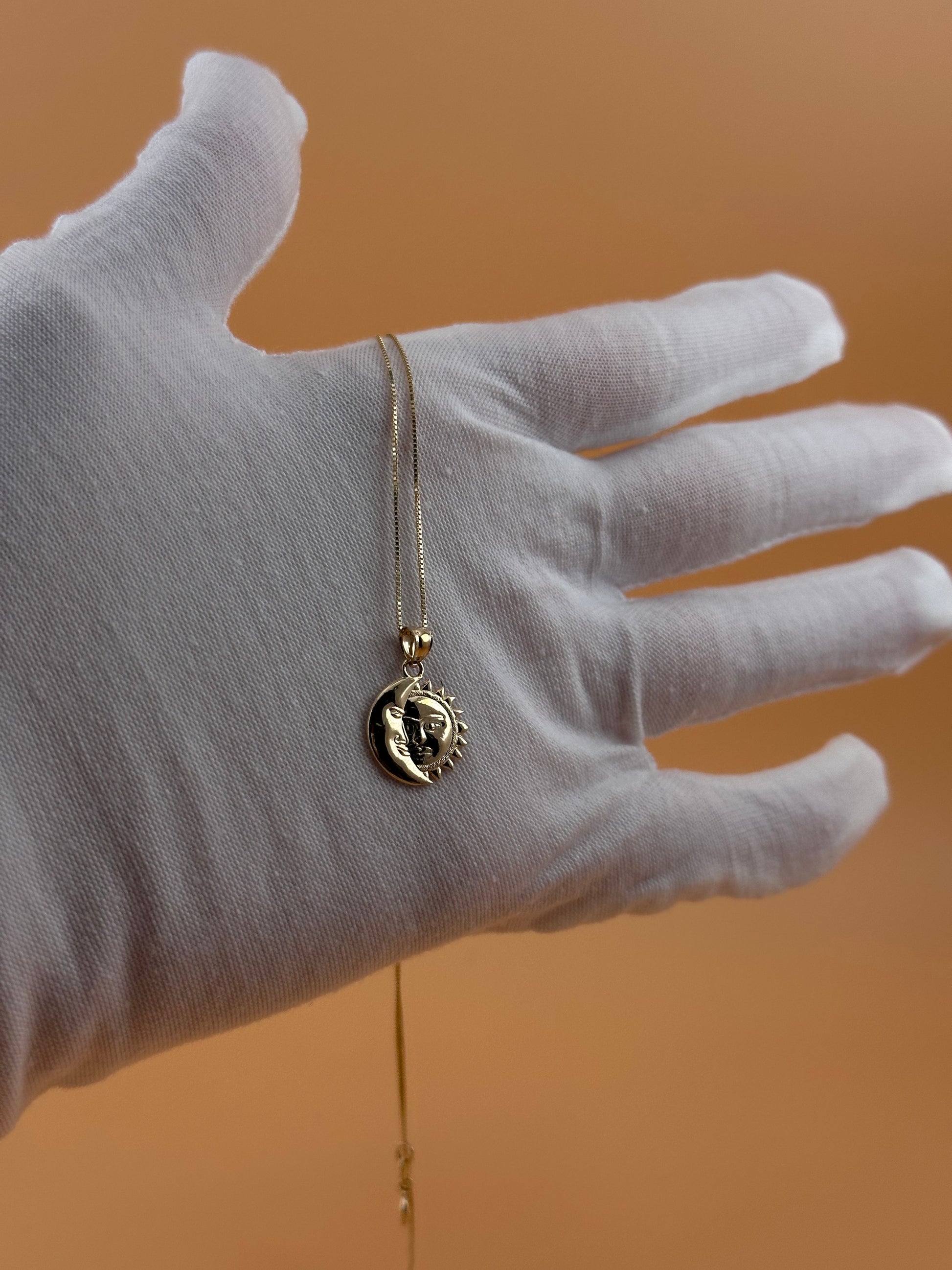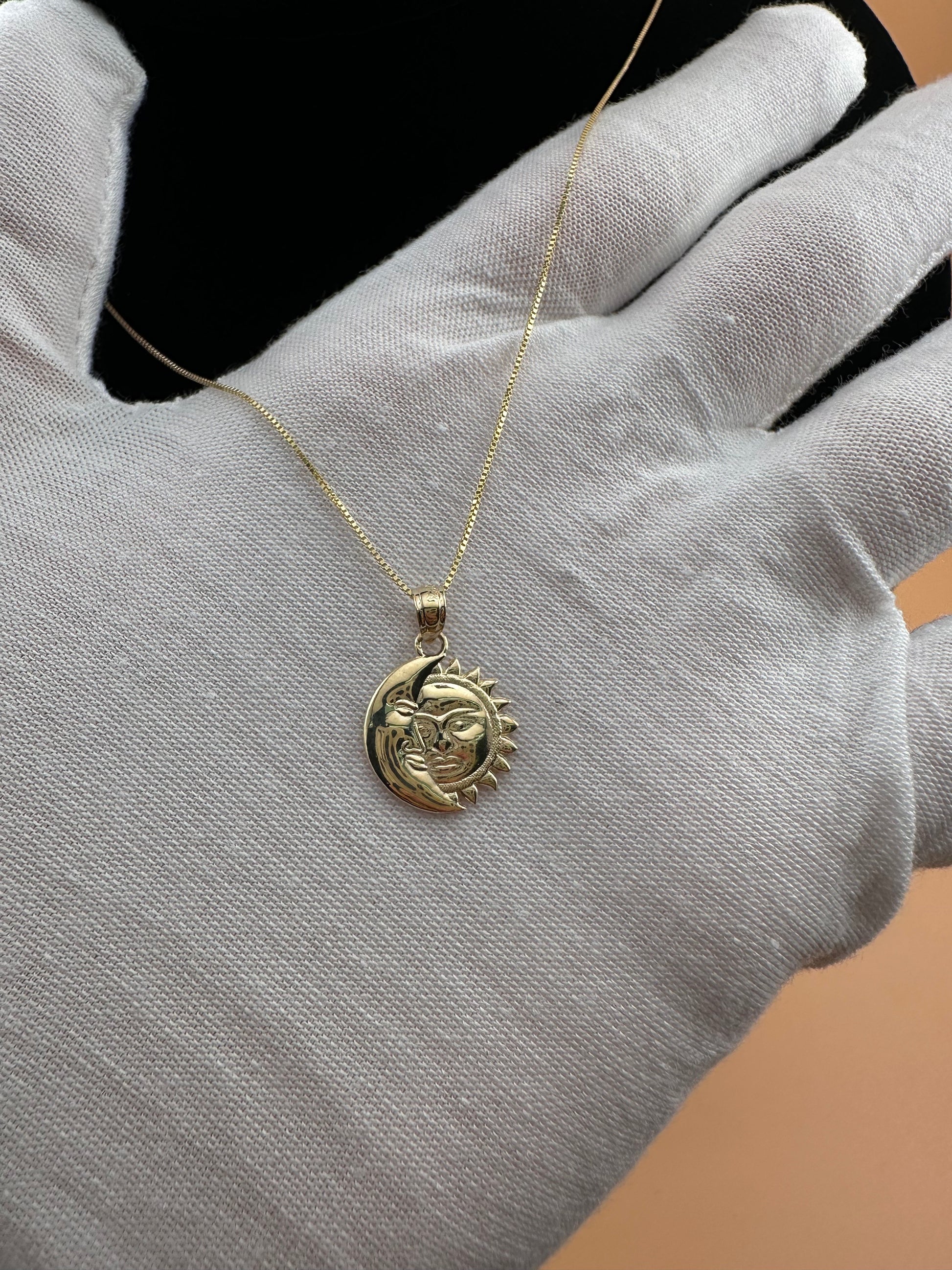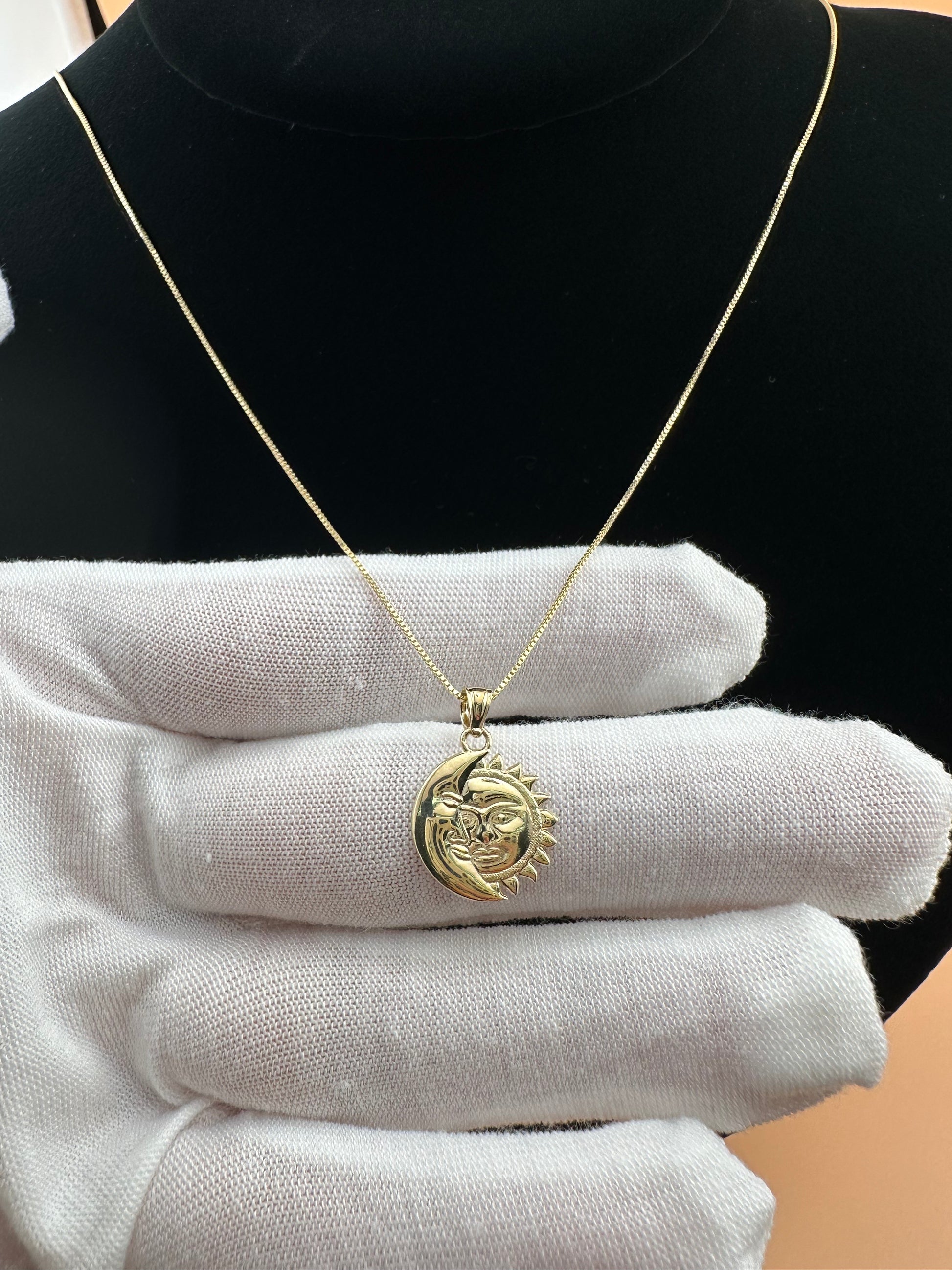 14K Gold Moon & Sun Pendant l Celestial Face Charm l Real Gold Astrology Jewelry
