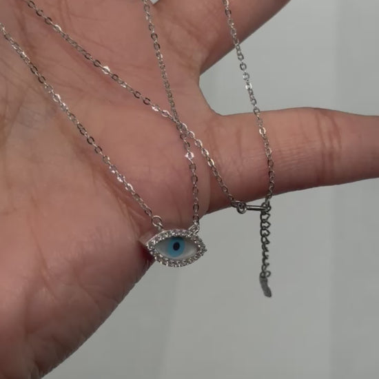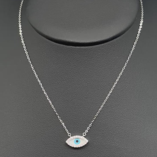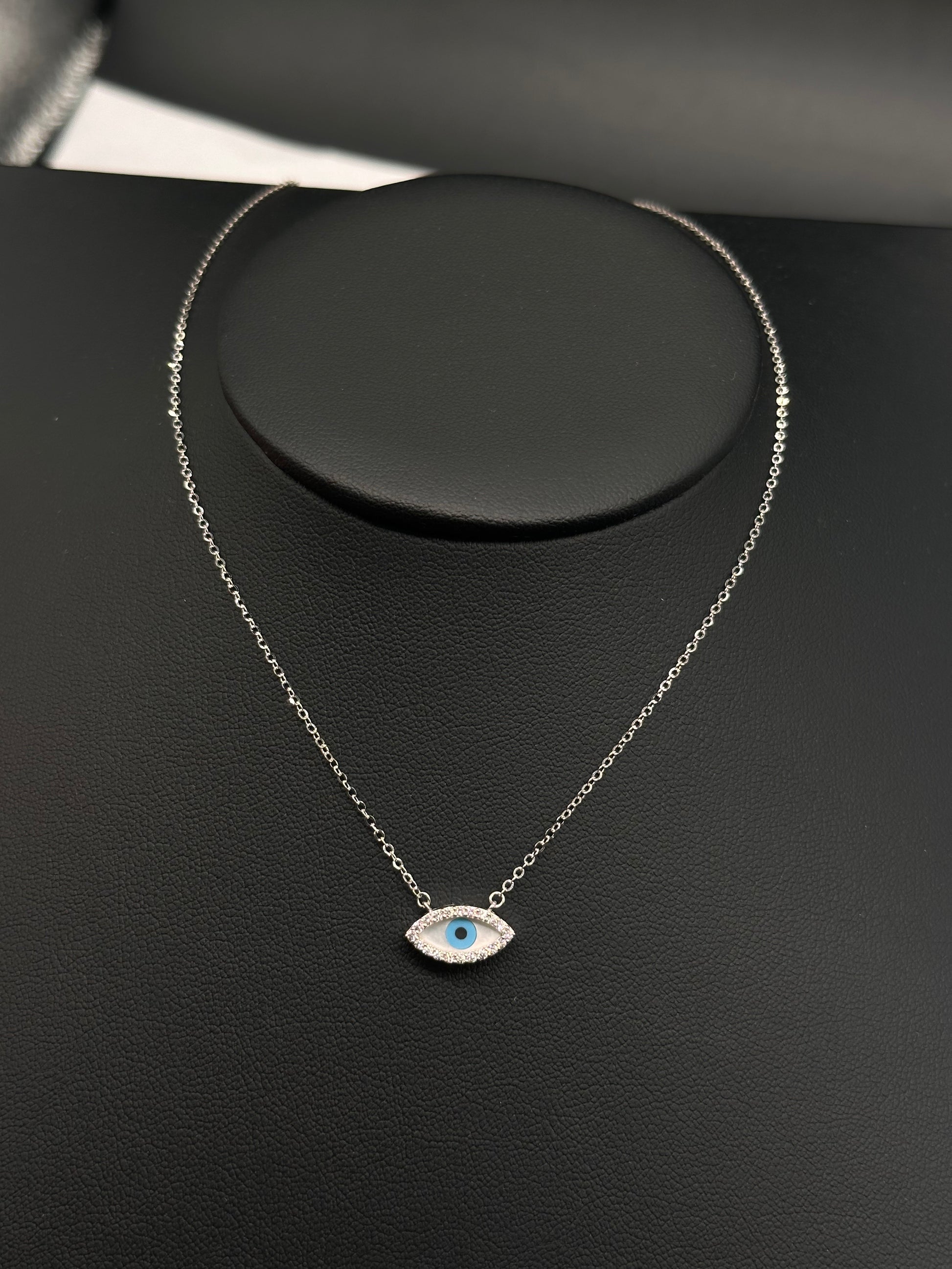 Showcase your style and spirituality with this 14K White Gold Evil Eye CZ Necklace, a stunning symbol of good fortune and positive energy. Hand-crafted in solid 14K white gold, this delicate pendant features the iconic evil eye motif, known for guarding against negativity and attracting good luck.