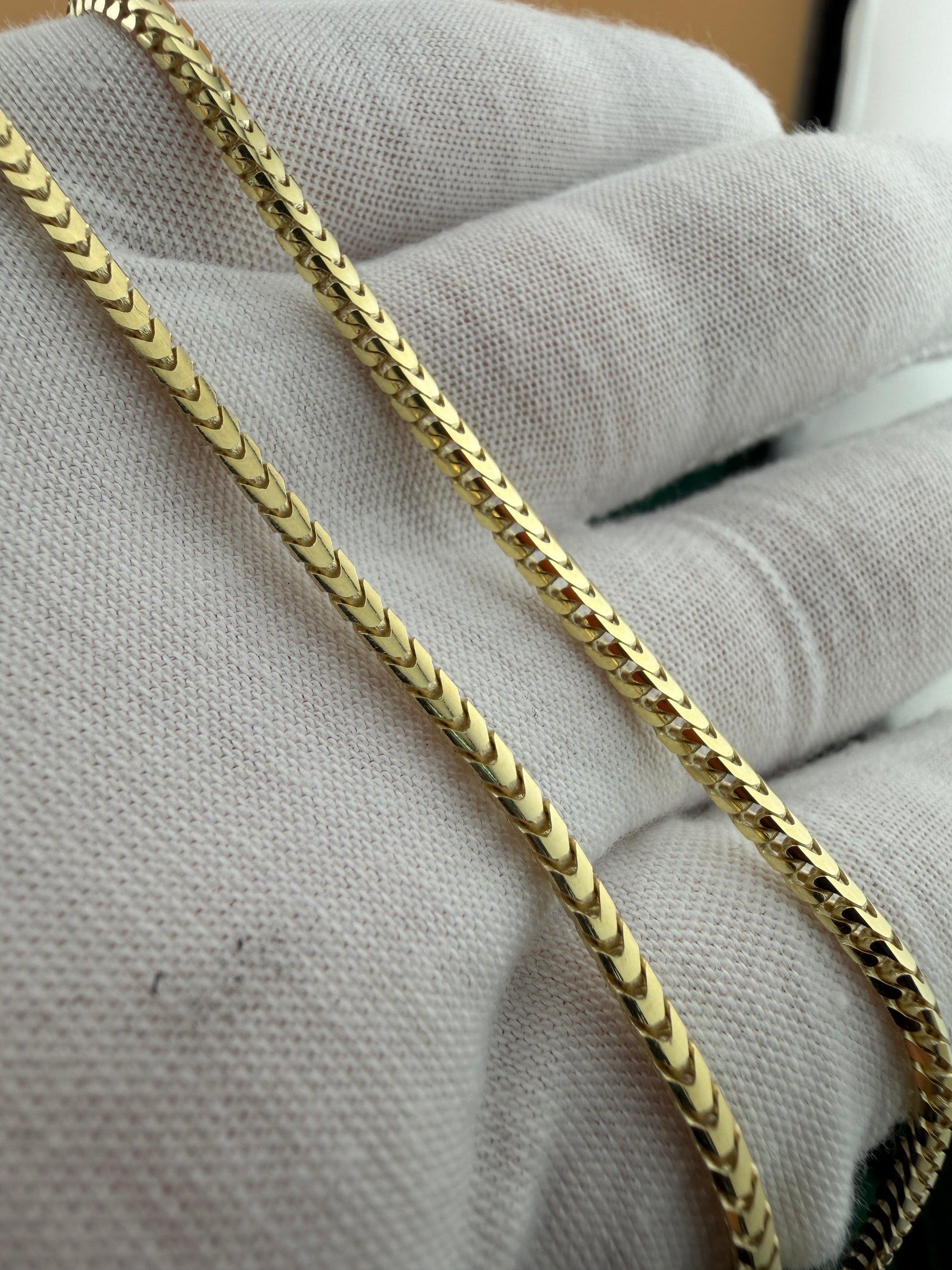 14K Yellow Gold 2.2mm Franco Chain – Real Solid Gold Italian Design