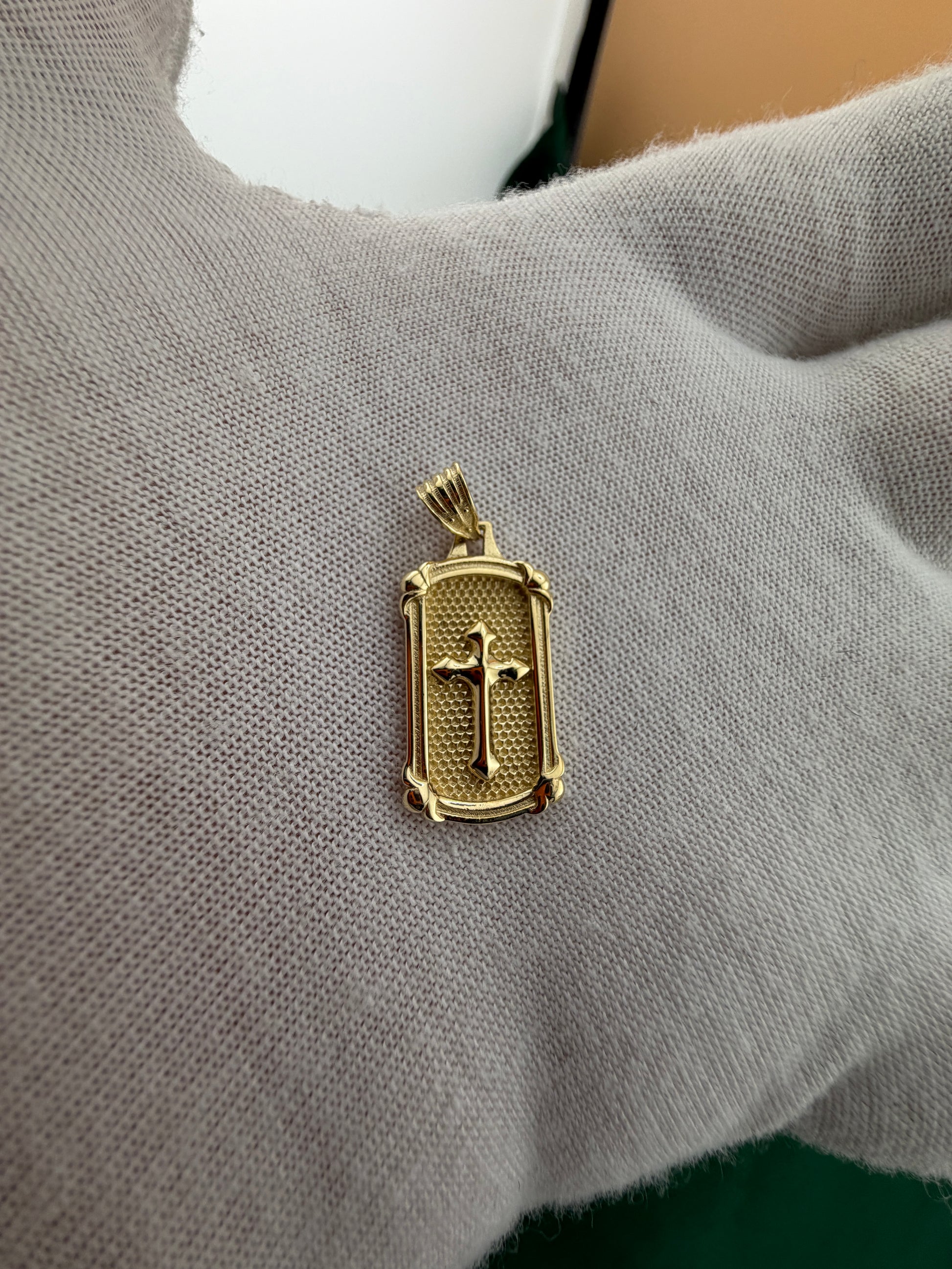 14K Yellow Gold Frame Cross Pendant – Classic Religious Charm