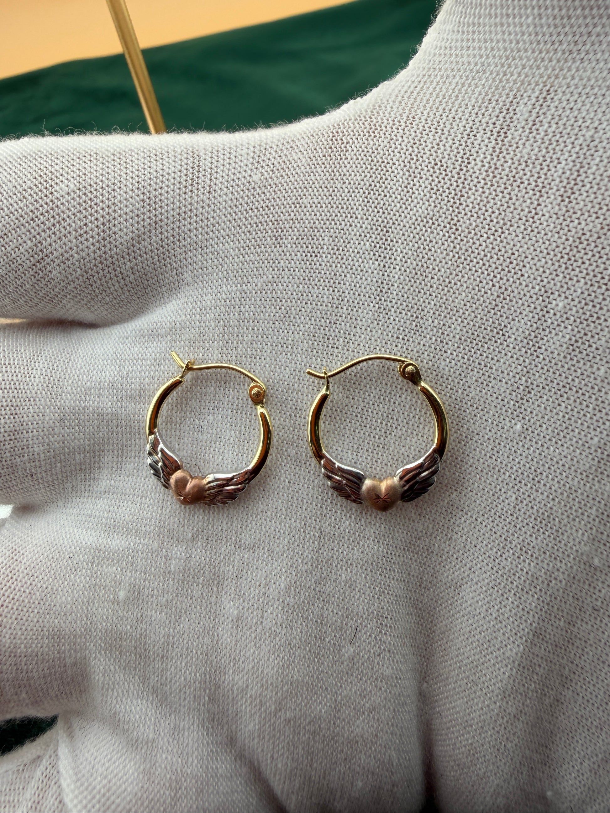These 14K Small Tri-Color Gold Hoop Earrings blend yellow, white, and rose gold in a seamless composition that feels both classic and contemporary. The soft interplay of tones creates a gentle shimmer that complements any style or skin tone.n Each hoop is crafted from real 14K solid gold and secured with a reliable clasp that closes smoothly for comfortable, all-day wear. Compact in size yet full of character, these earrings bring warmth, versatility, and timeless charm to every look.
