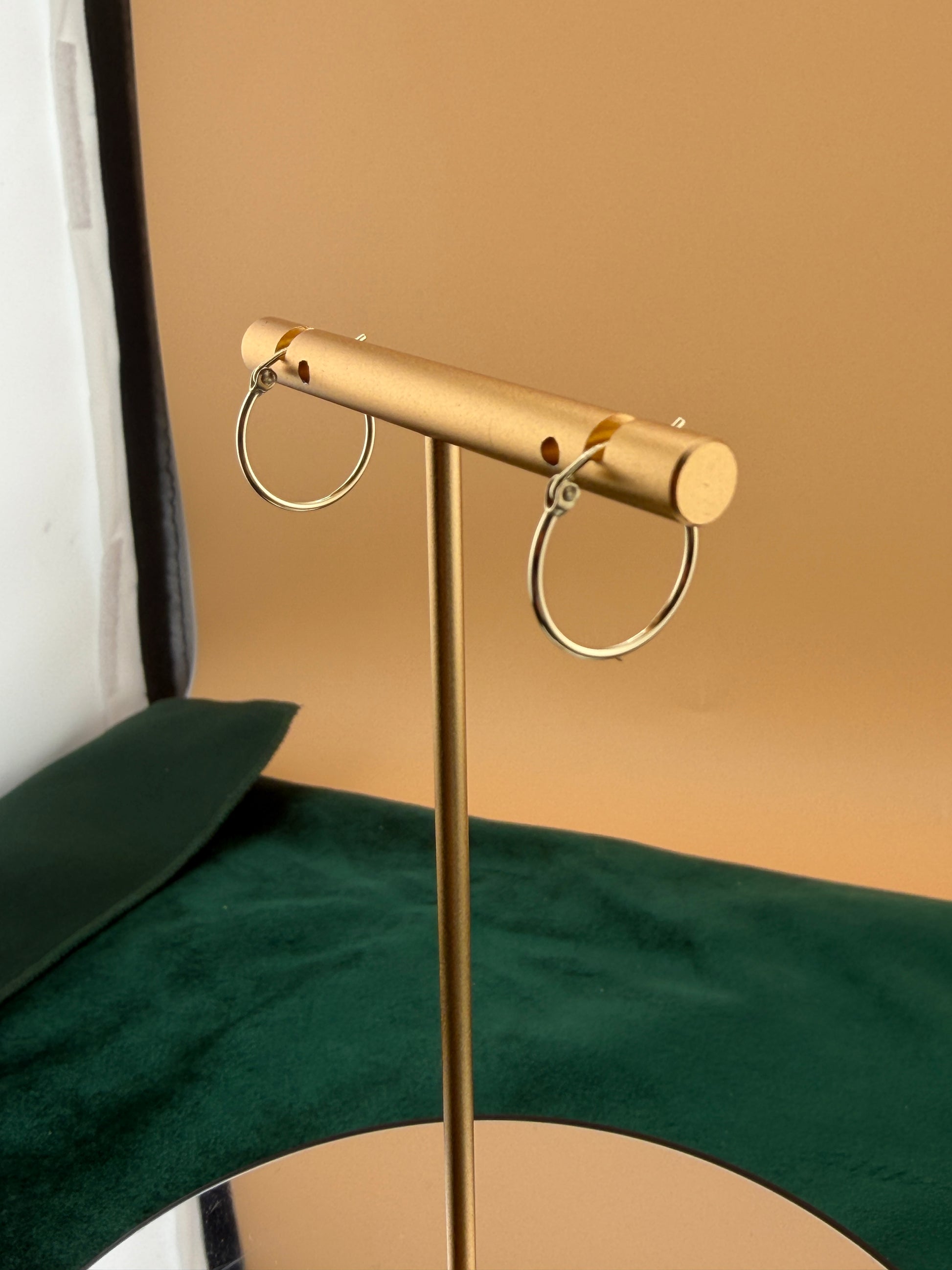 These 14K Gold Hoop Earrings are designed with a focus on balance, simplicity, and timeless beauty. The smooth 1mm silhouette creates a graceful frame that catches the light with a soft, natural glow. Light yet substantial, they bring a touch of quiet confidence to any look. Crafted from real 14K yellow gold, these hoops are polished to a gentle luster that complements both casual and refined styles. Perfect for everyday wear or evening moments, they embody the harmony of classic design and modern ease.