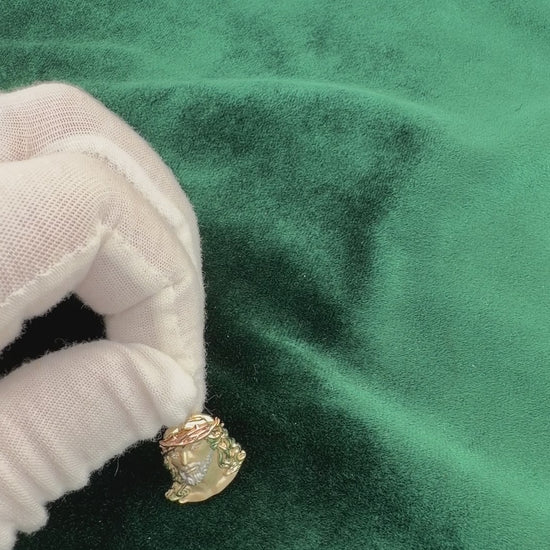 Color: High-polish yellow gold with white-gold detailing and rose-gold crown of thorns